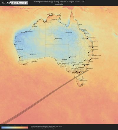 The following maps show the average cloud coverage for the day of the total solar eclipse.