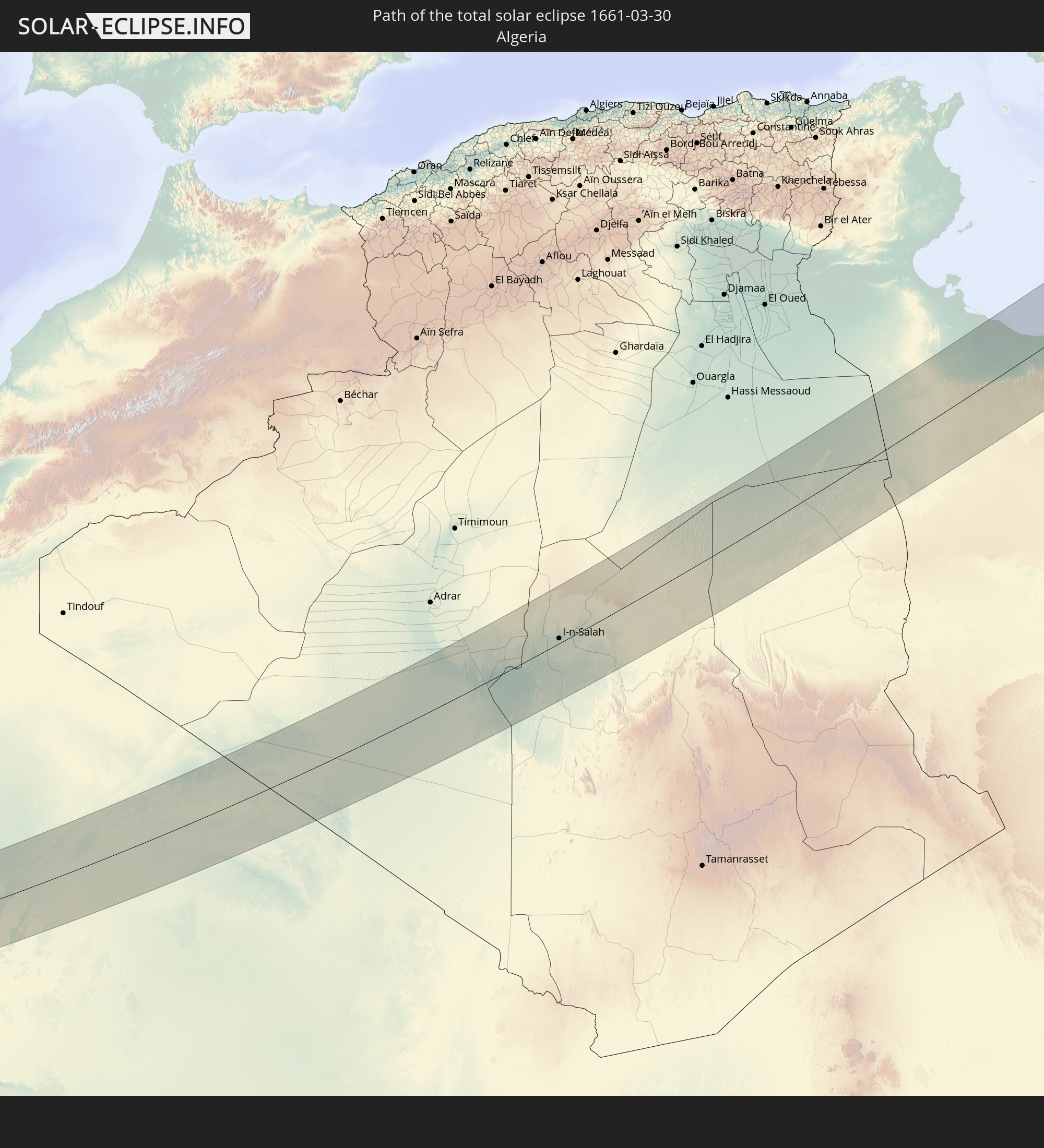 Wo kann man die Sonnenfinsternis vom 03/30/1661 sehen?