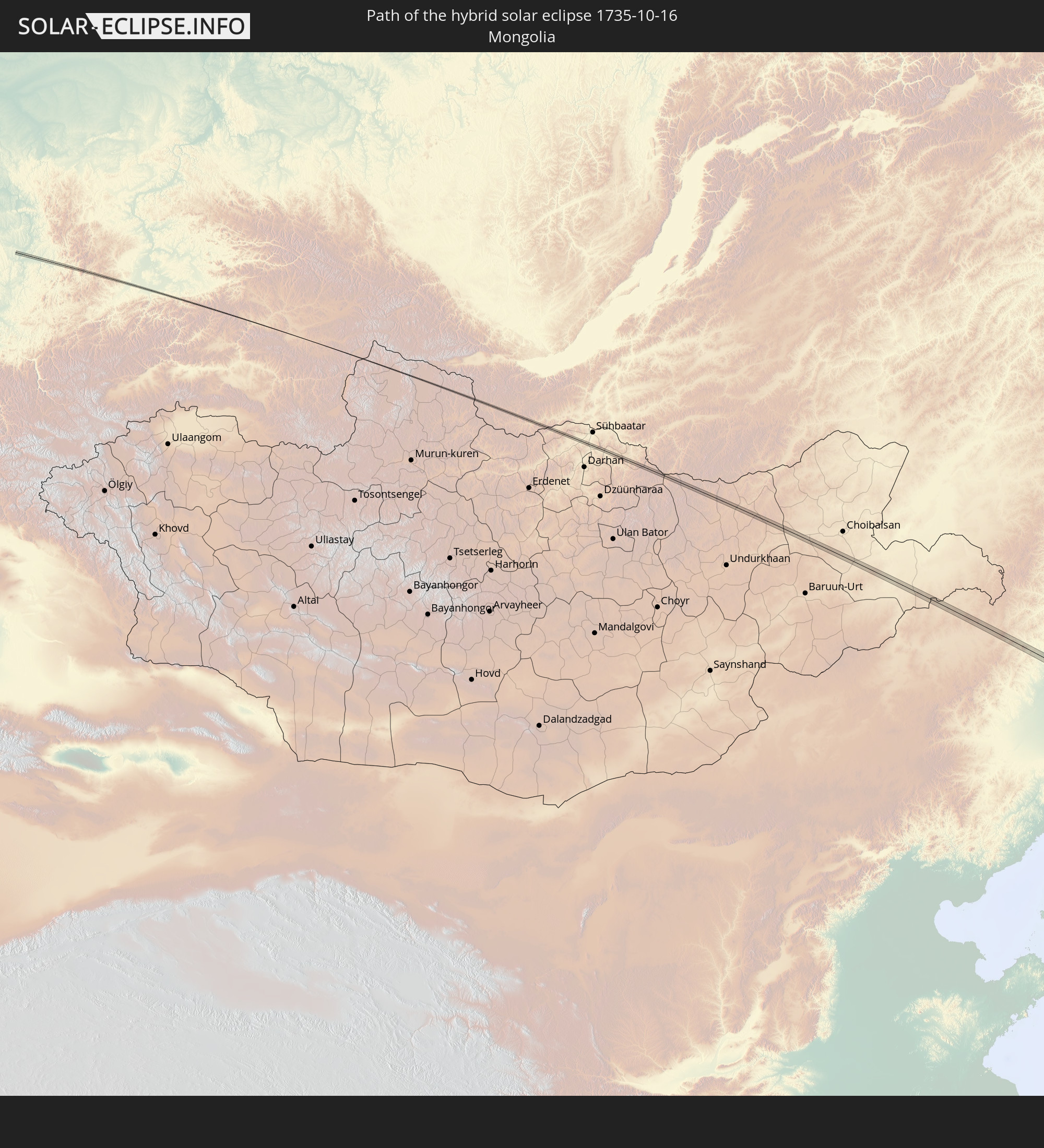 Wo kann man die Sonnenfinsternis vom 10/16/1735 sehen?