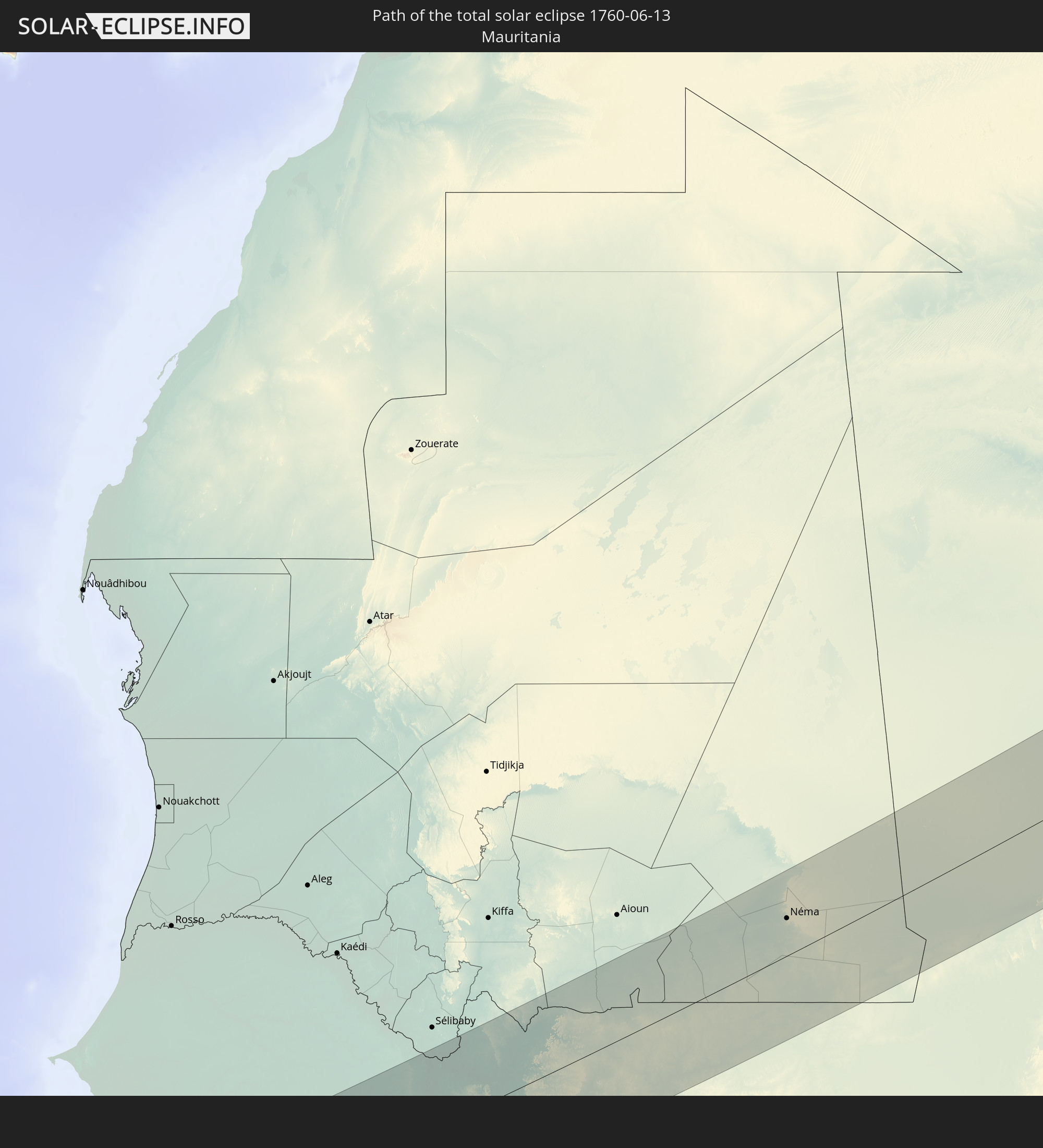 Wo kann man die Sonnenfinsternis vom 06/13/1760 sehen?