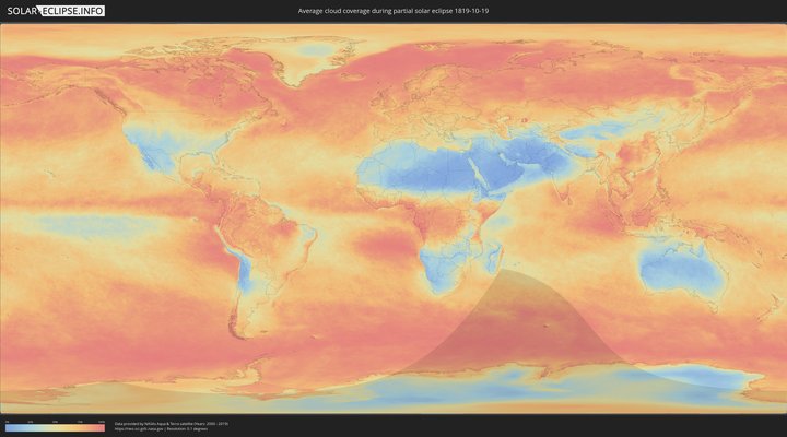 The following maps show the average cloud coverage for the day of the partial solar eclipse.