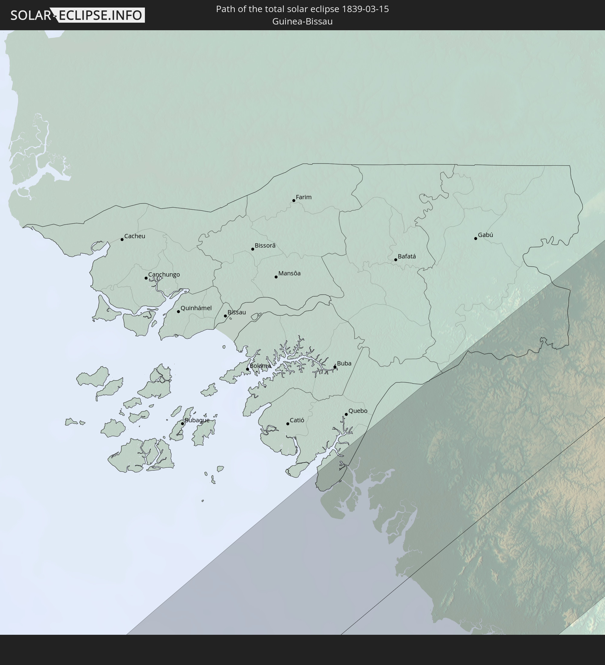 Wo kann man die Sonnenfinsternis vom 03/15/1839 sehen?