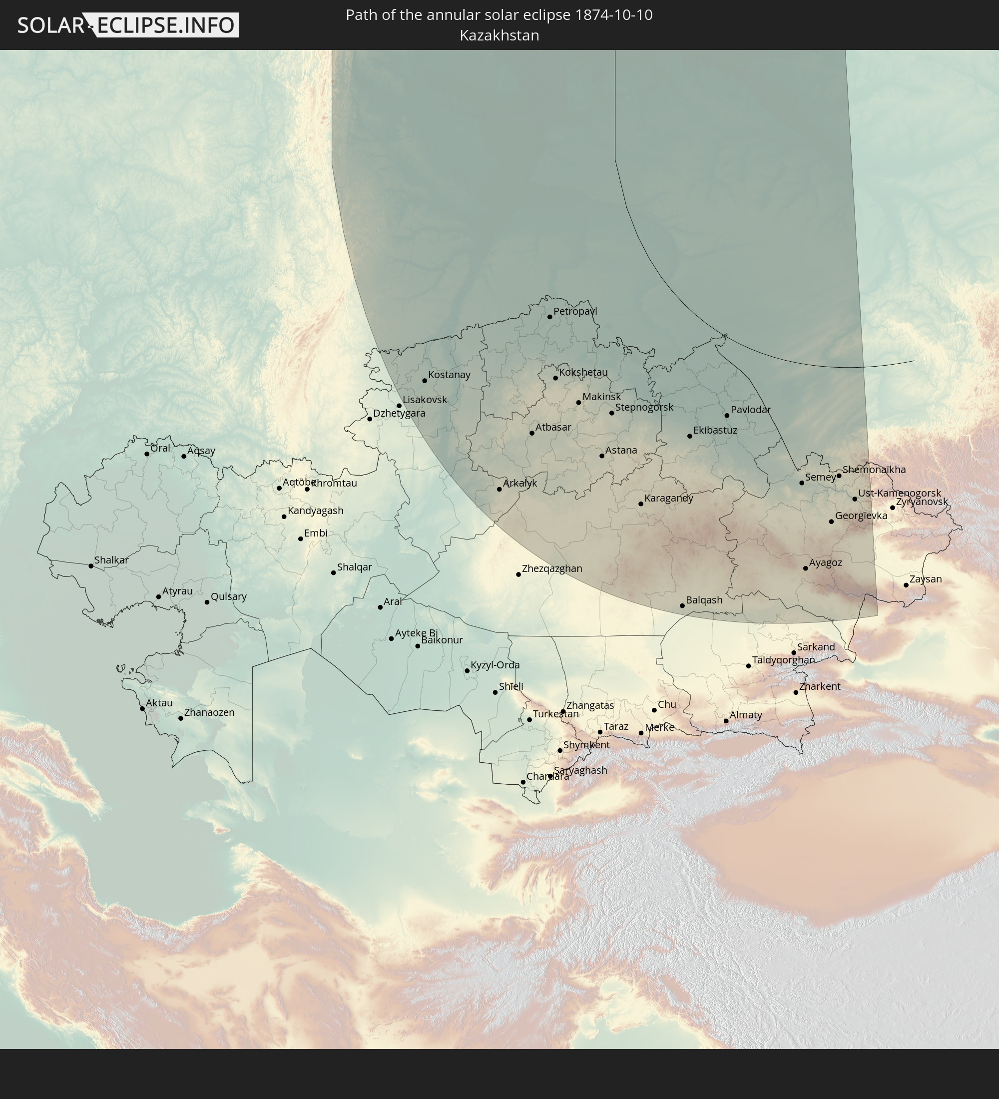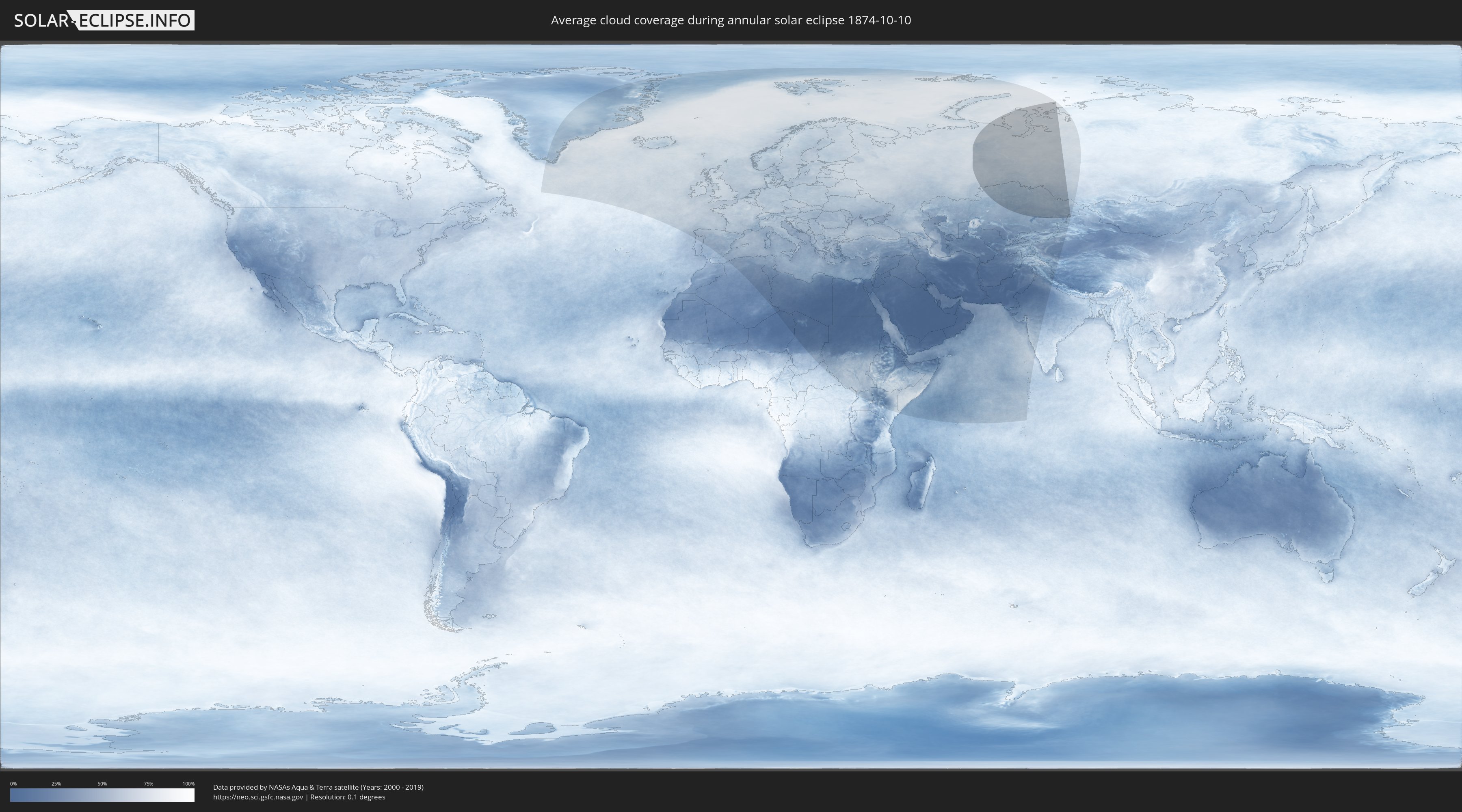 Wo kann man die Sonnenfinsternis vom 10/10/1874 sehen?