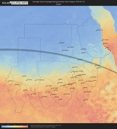 The following maps show the average cloud coverage for the day of the annular solar eclipse.