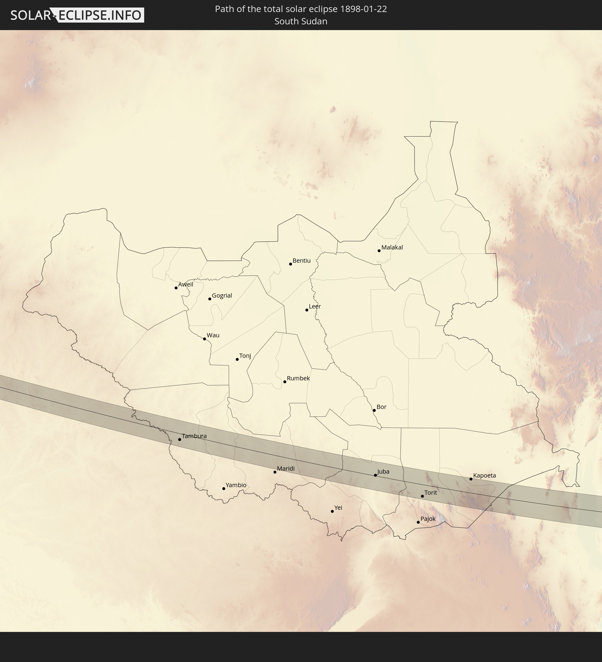 Wo kann man die Sonnenfinsternis vom 01/22/1898 sehen?