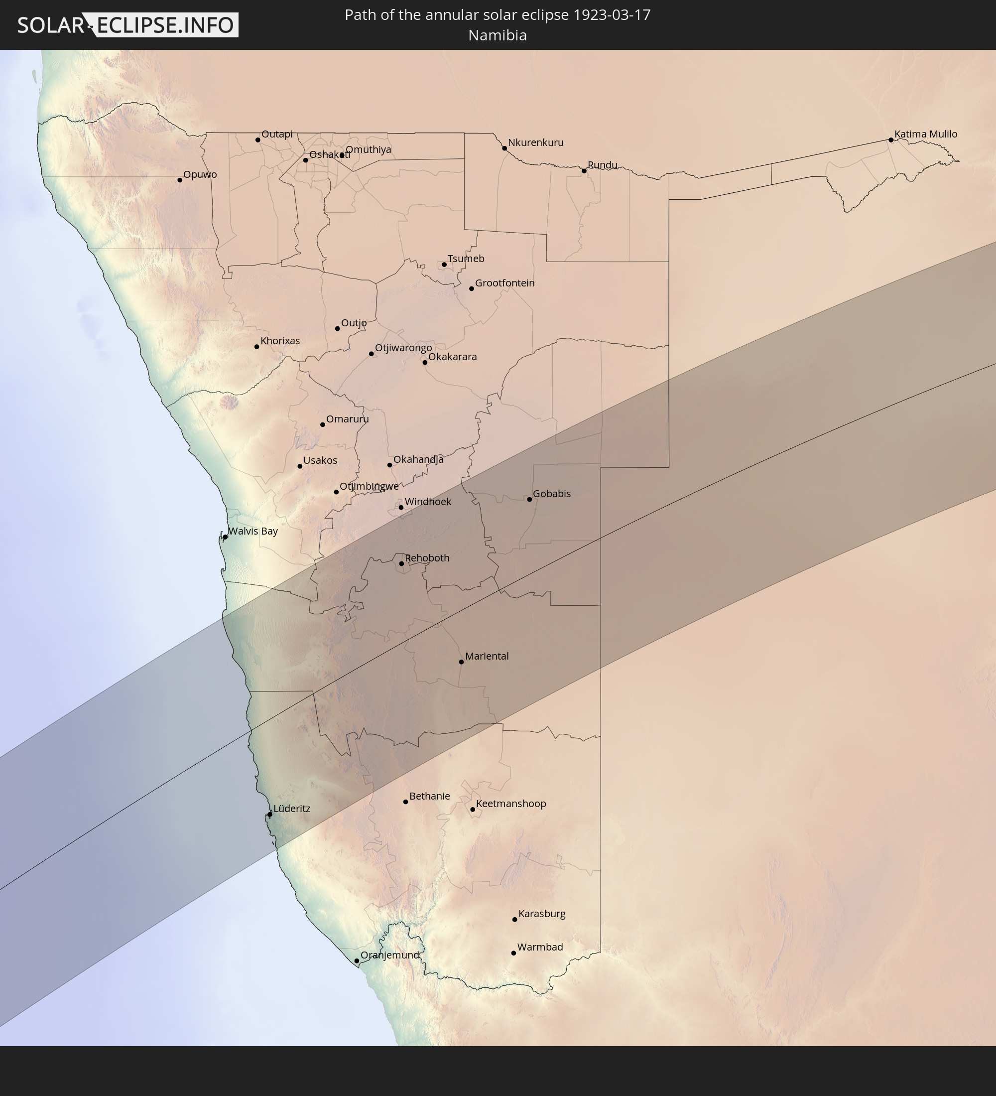 Wo kann man die Sonnenfinsternis vom 03/17/1923 sehen?