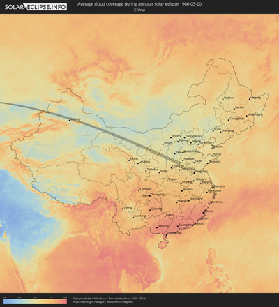 The following maps show the average cloud coverage for the day of the annular solar eclipse.