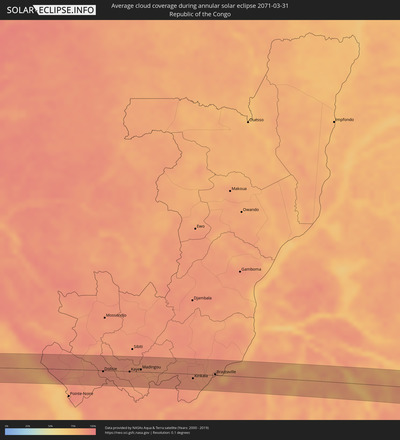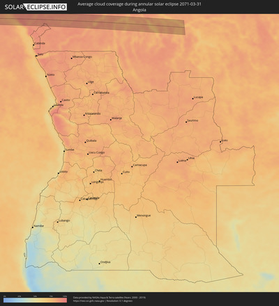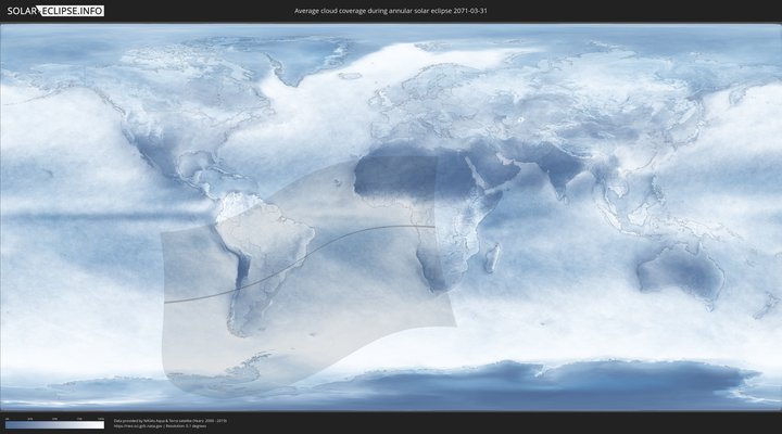 The following maps show the average cloud coverage for the day of the annular solar eclipse.