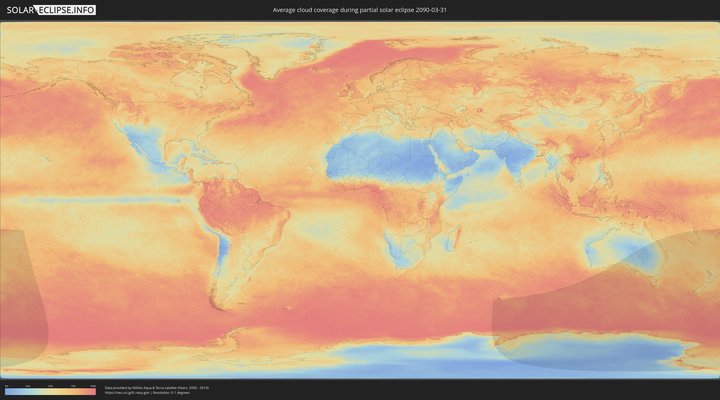 How will be the weather during the partial solar eclipse on 03/31/2090?