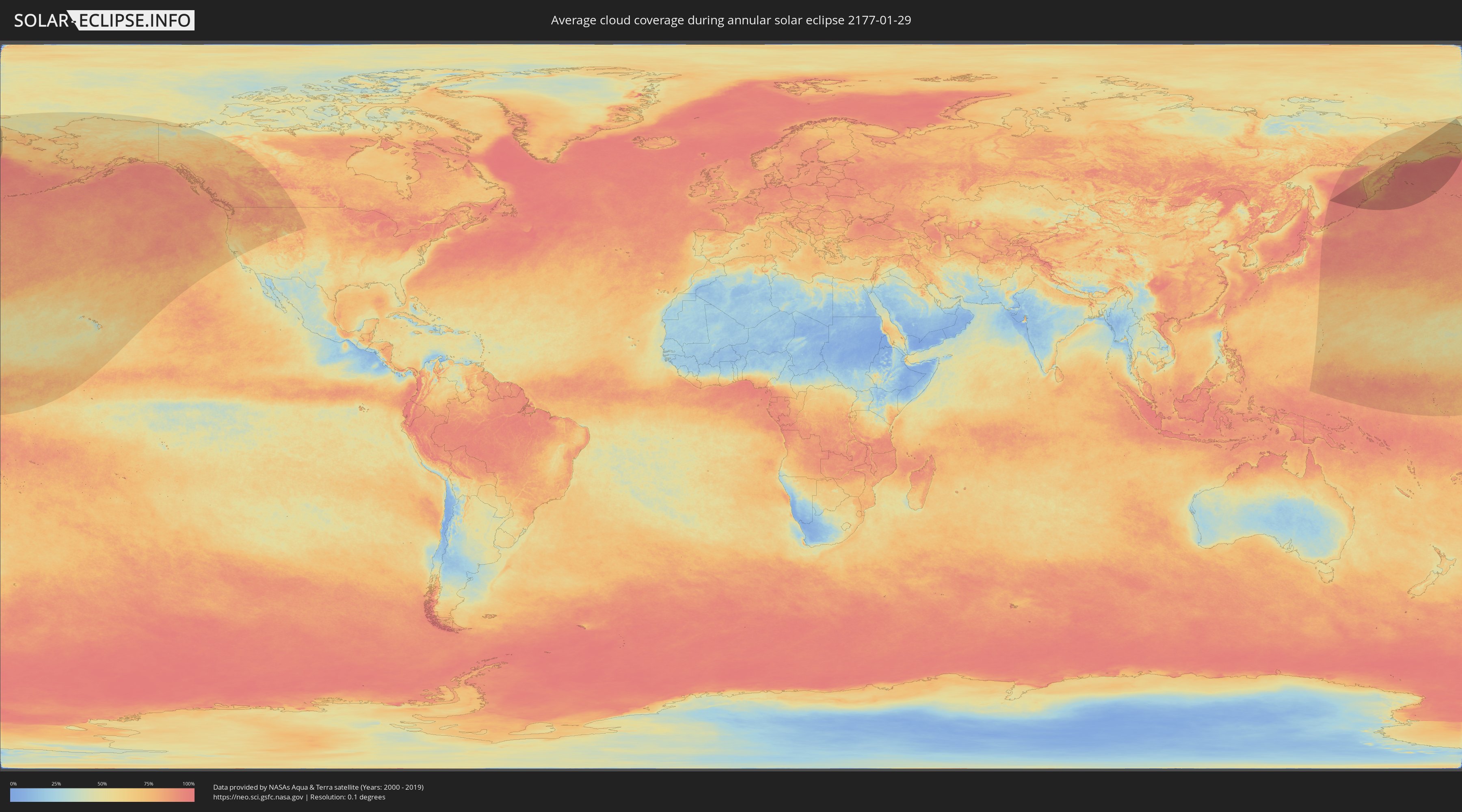 How will be the weather during the annular solar eclipse on 01/29/2177?