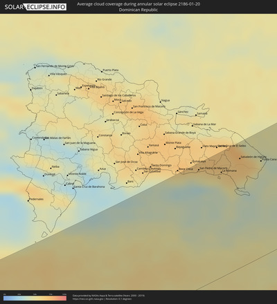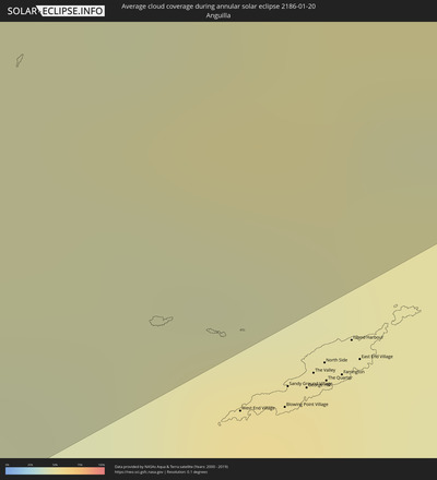 How will be the weather during the annular solar eclipse on 01/20/2186?