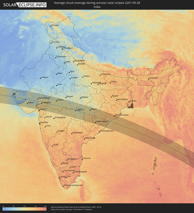 The following maps show the average cloud coverage for the day of the annular solar eclipse.