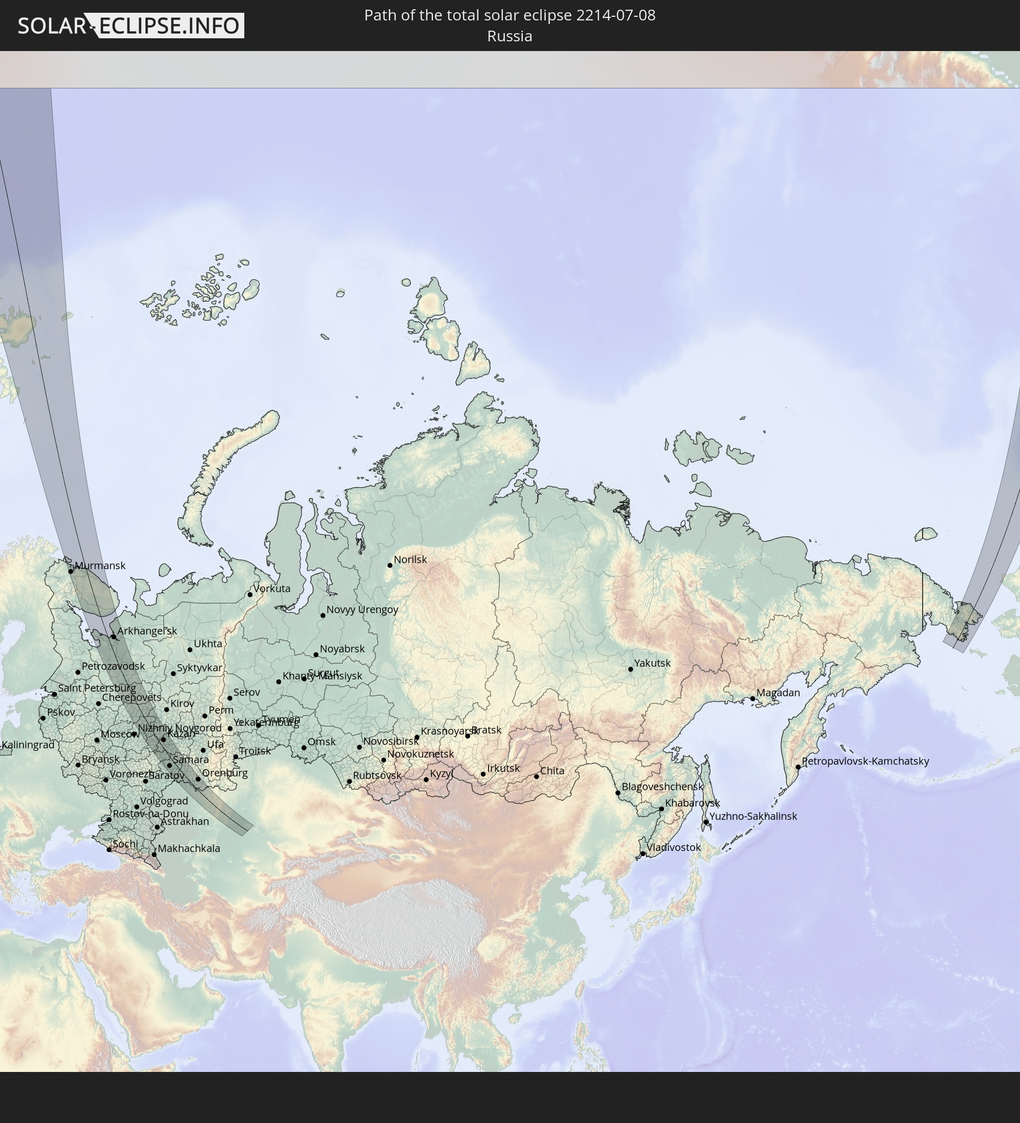 | Maximum width of eclipse path: | 230 km |