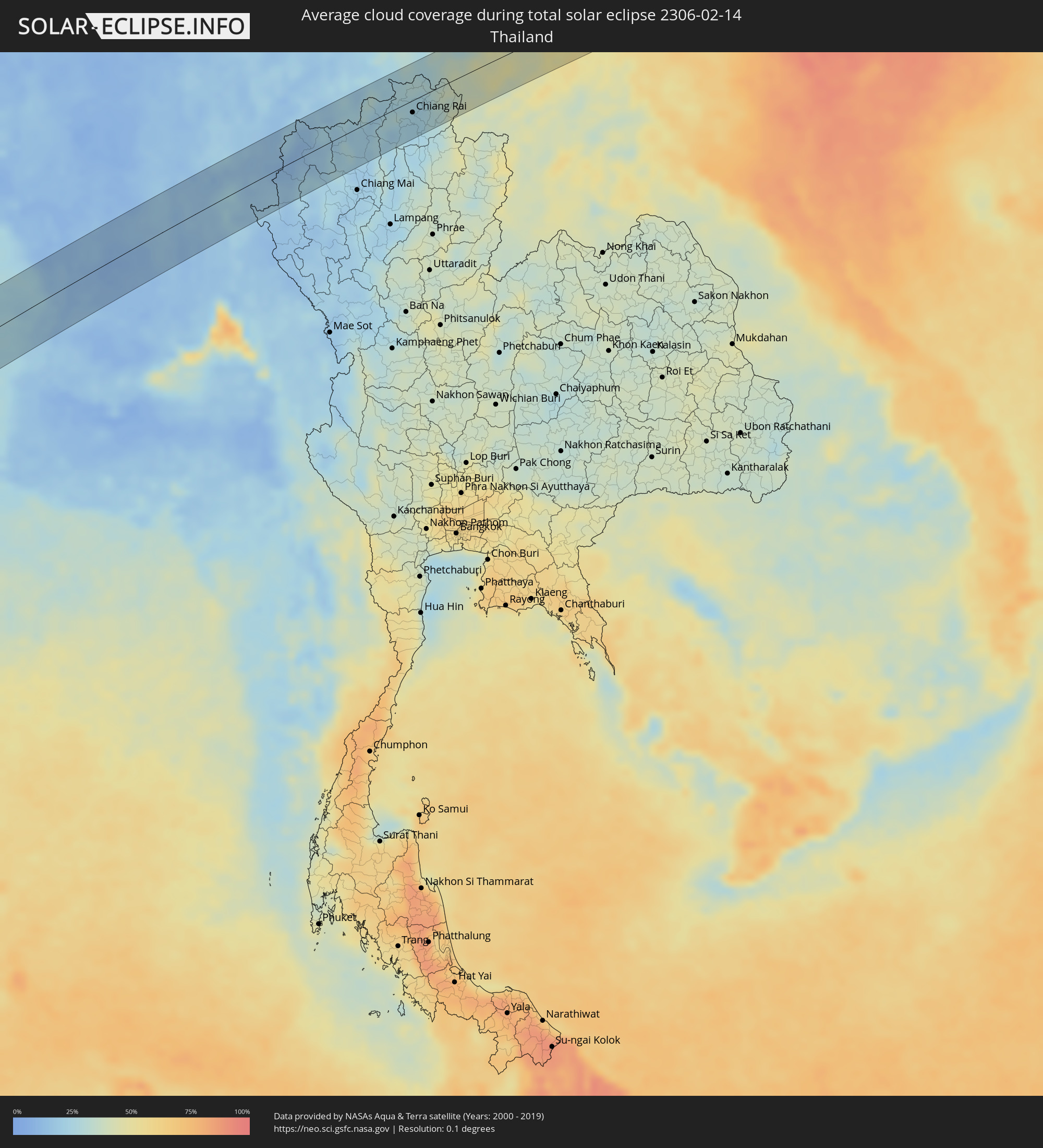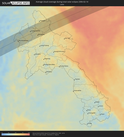 The following maps show the average cloud coverage for the day of the total solar eclipse.