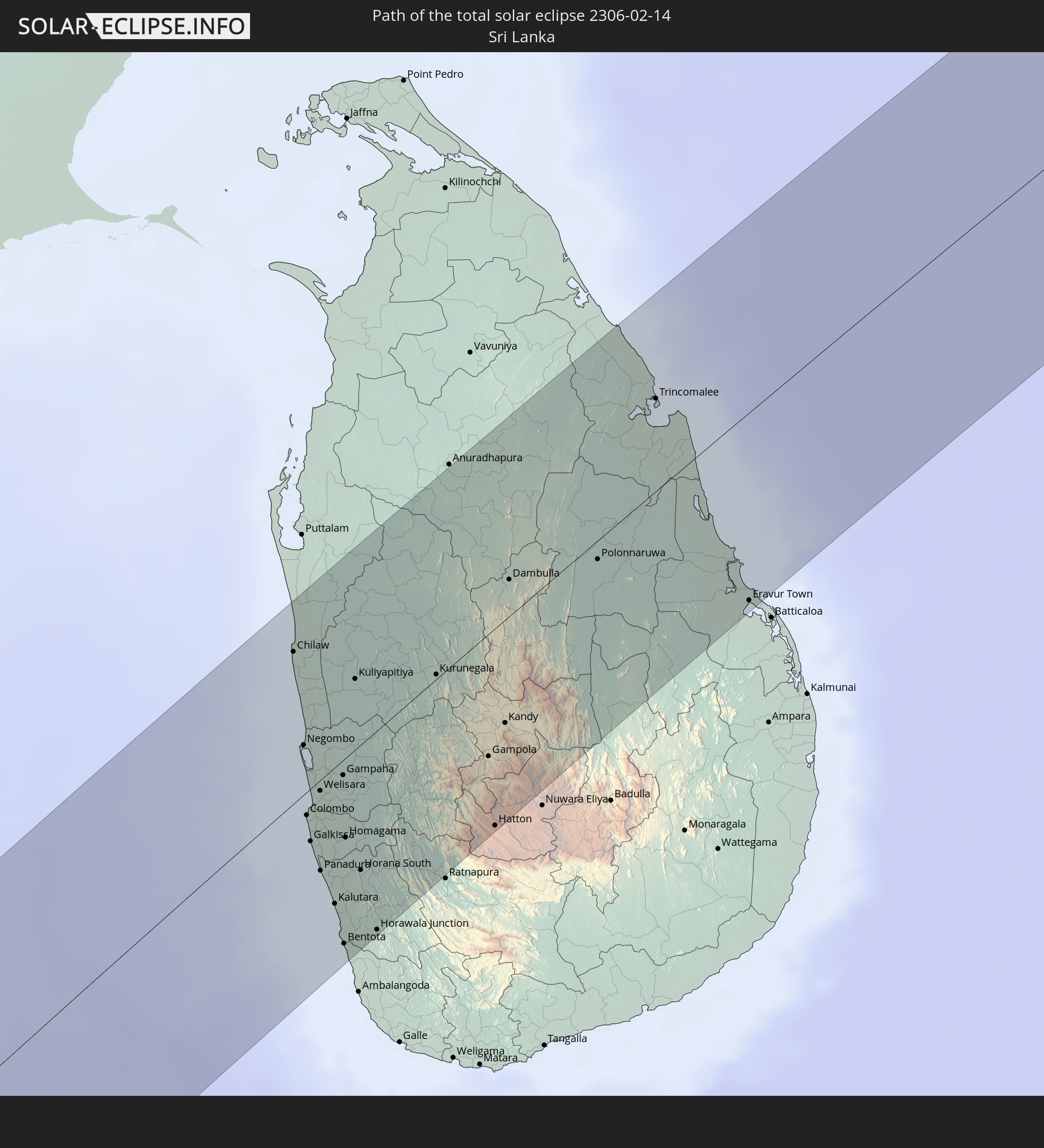Wo kann man die Sonnenfinsternis vom 02/14/2306 sehen?