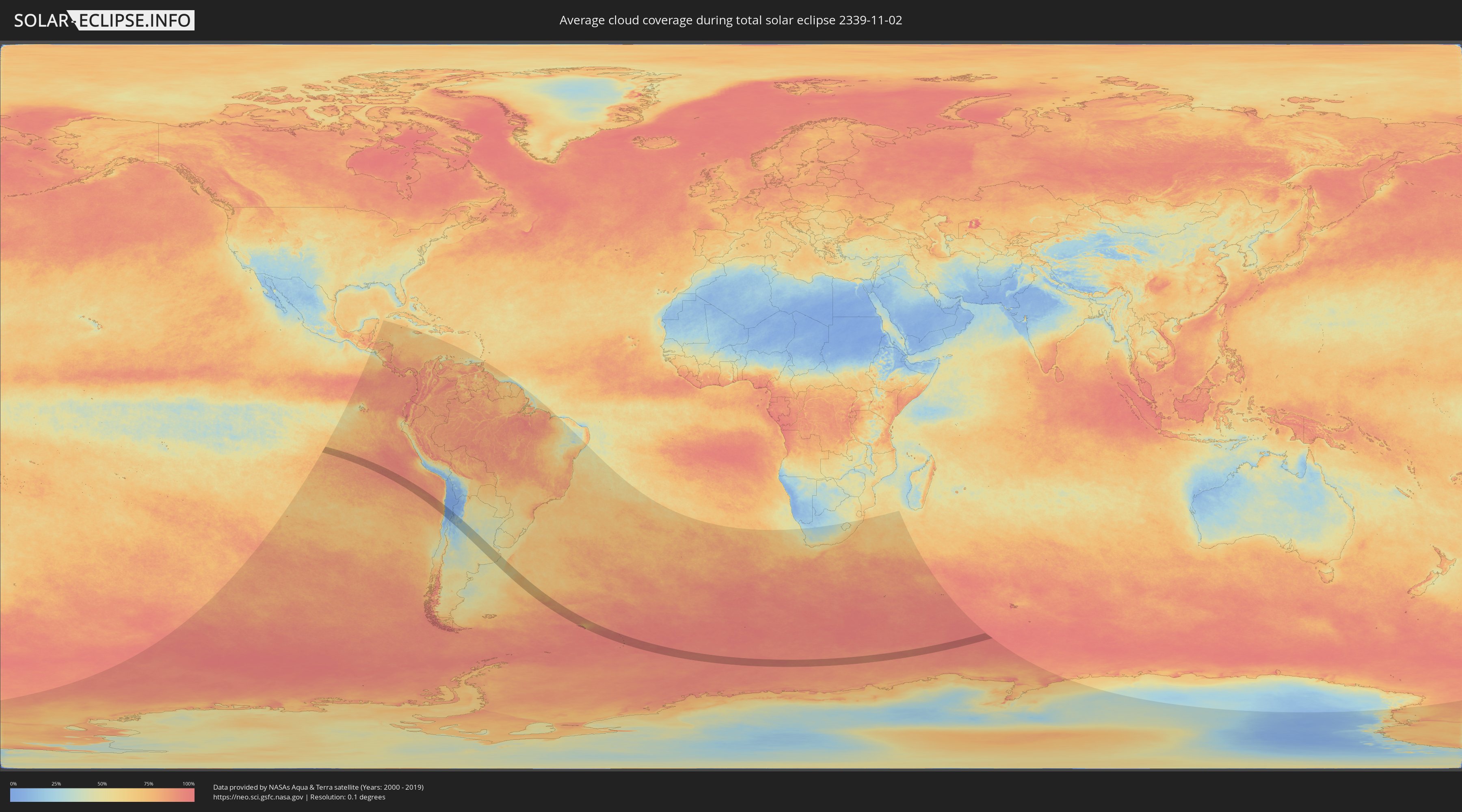How will be the weather during the total solar eclipse on 11/02/2339?