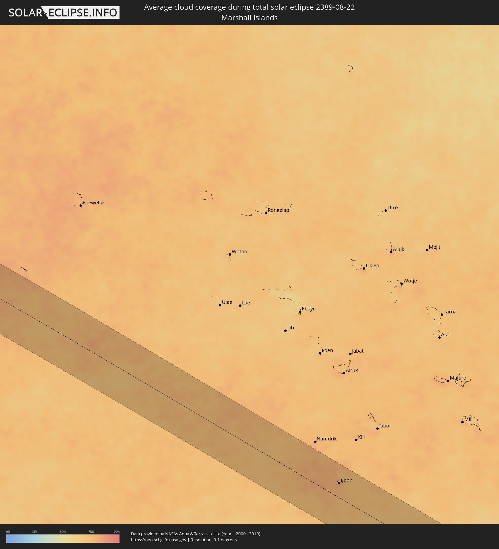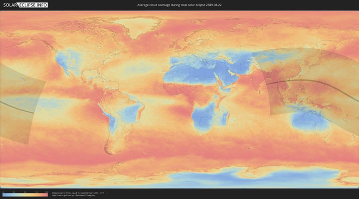 How will be the weather during the total solar eclipse on 08/22/2389?