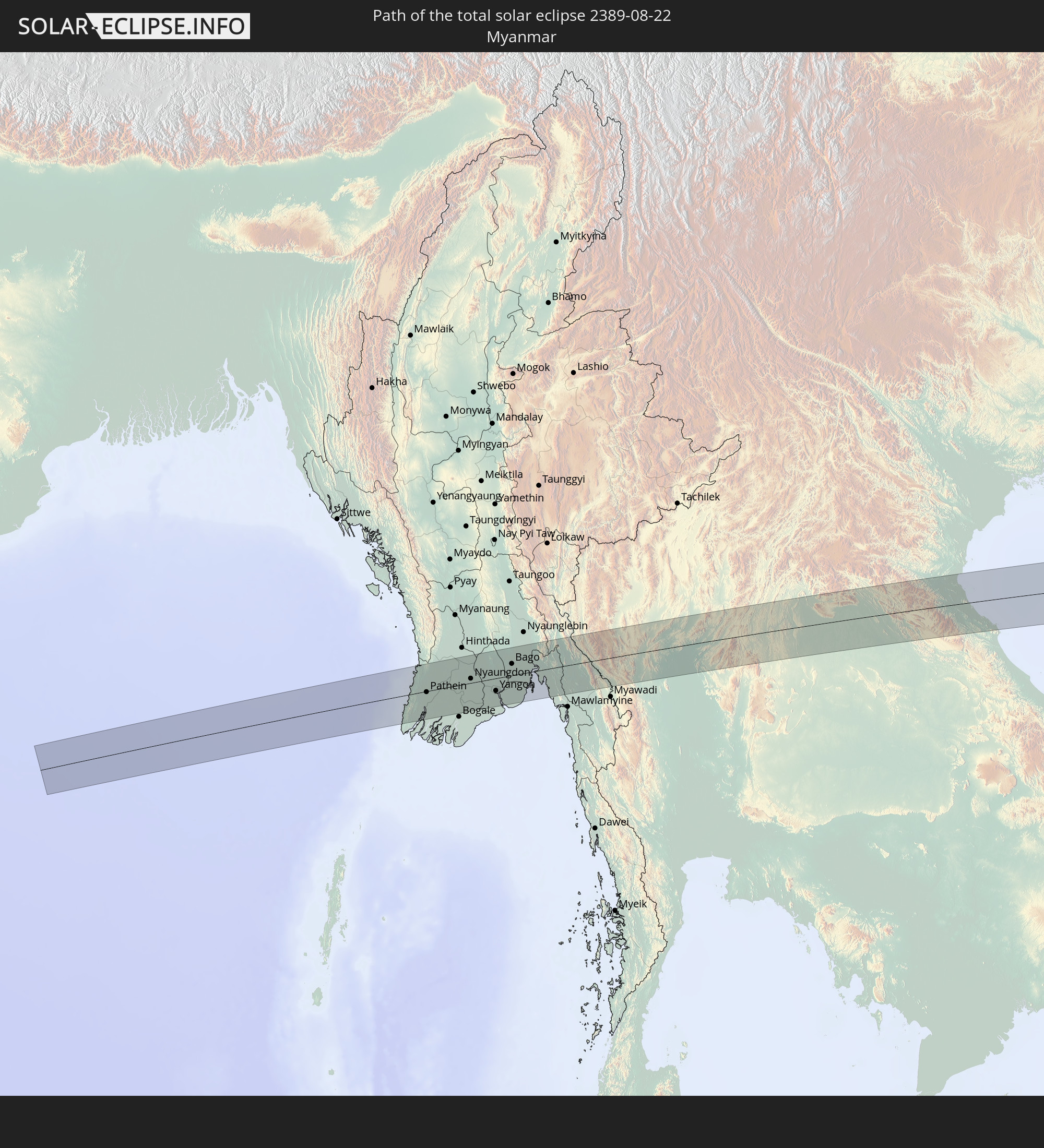 Wo kann man die Sonnenfinsternis vom 08/22/2389 sehen?