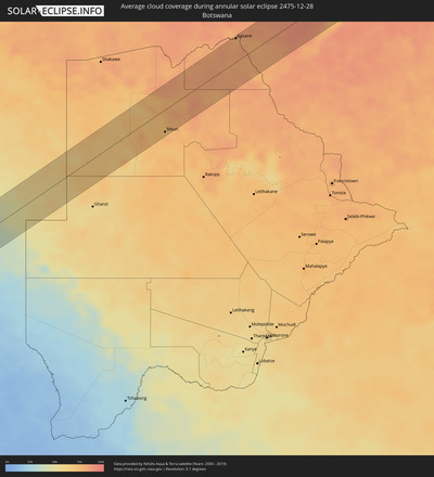 The following maps show the average cloud coverage for the day of the annular solar eclipse.