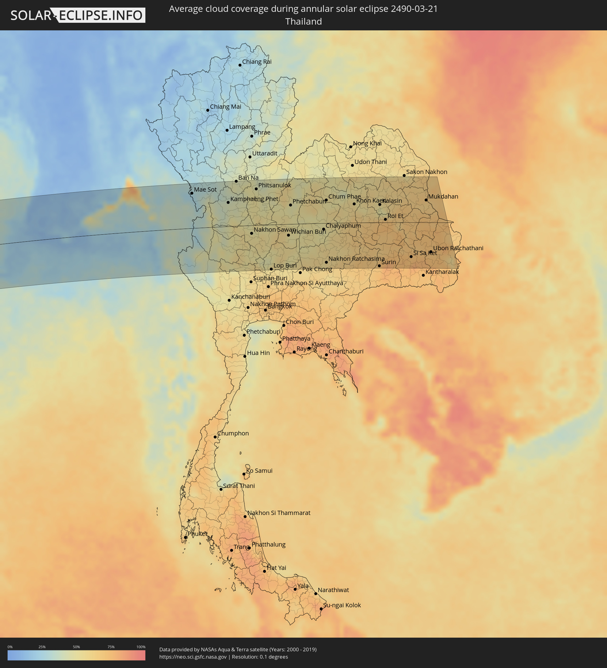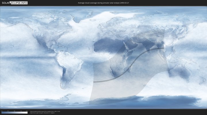 How will be the weather during the annular solar eclipse on 03/21/2490?