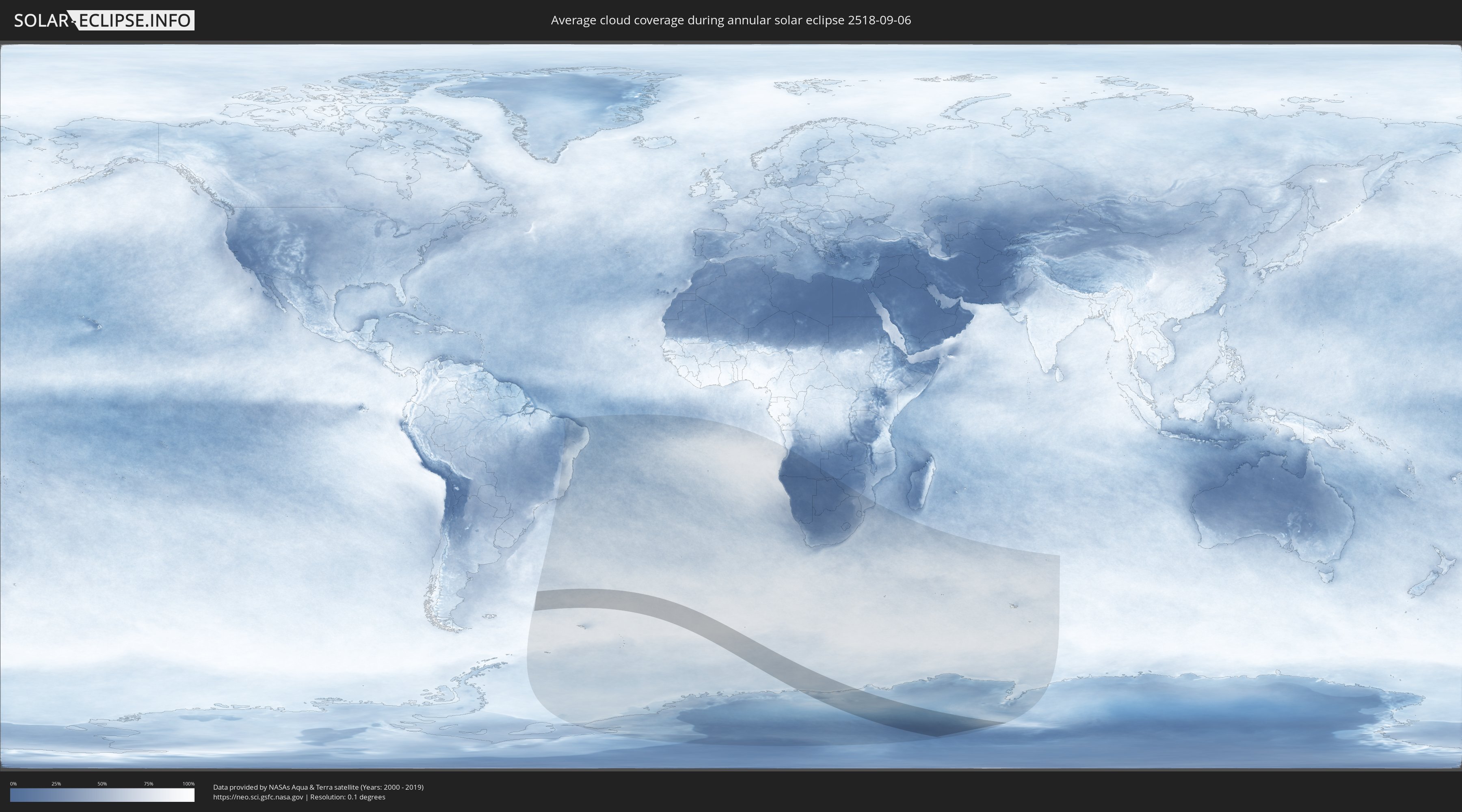The following maps show the average cloud coverage for the day of the annular solar eclipse.
