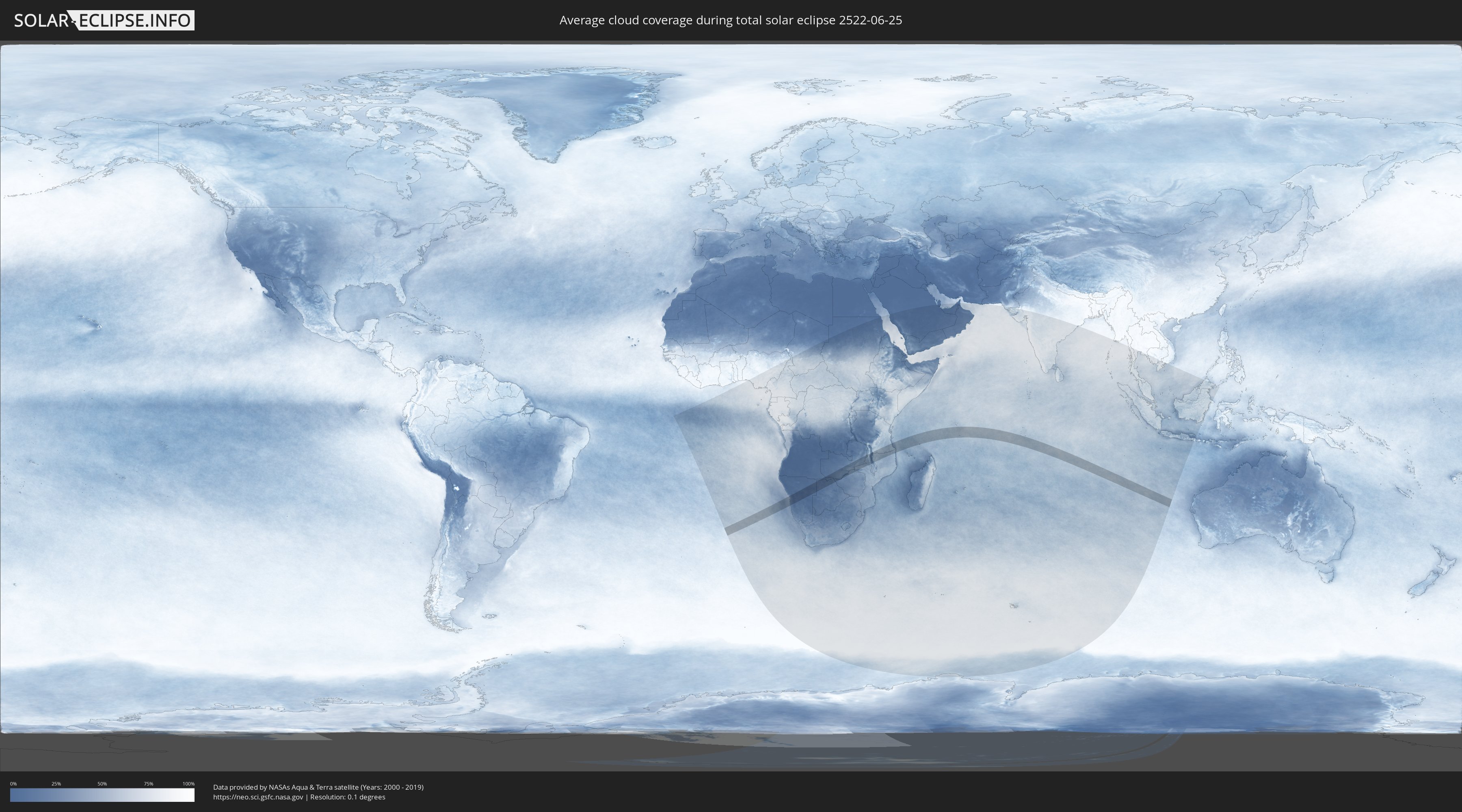 How will be the weather during the total solar eclipse on 06/25/2522?