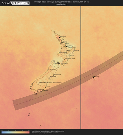 The following maps show the average cloud coverage for the day of the annular solar eclipse.