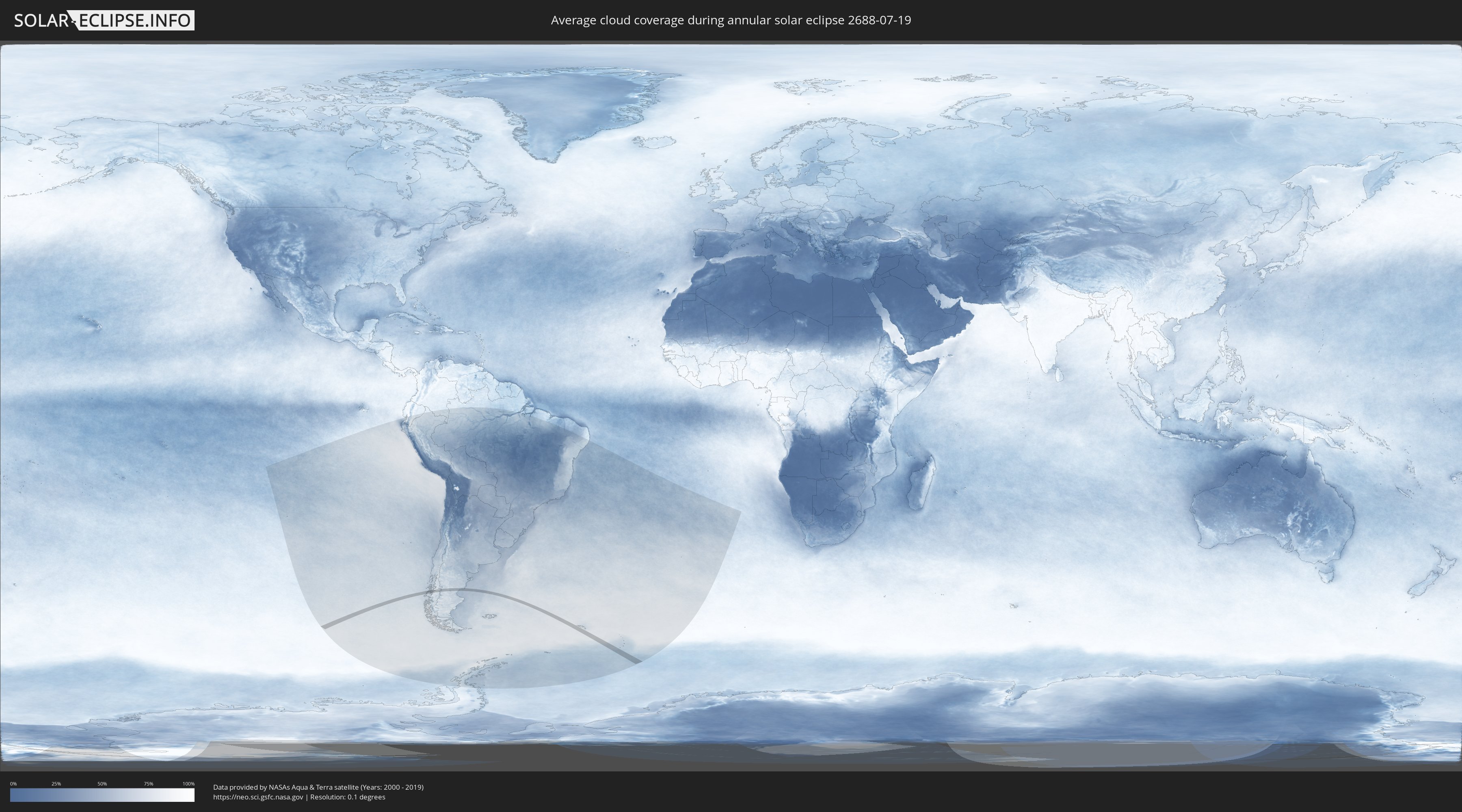 The following maps show the average cloud coverage for the day of the annular solar eclipse.