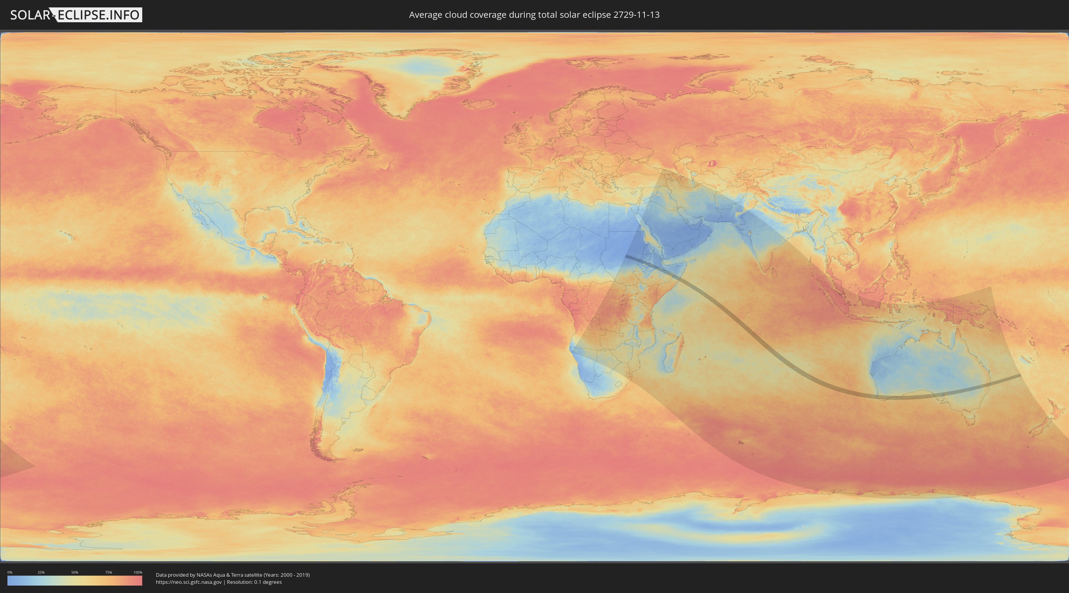 How will be the weather during the total solar eclipse on 11/13/2729?