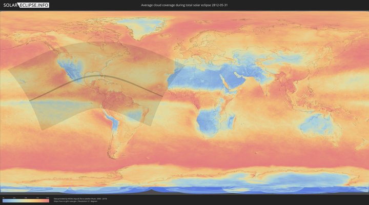 The following maps show the average cloud coverage for the day of the total solar eclipse.