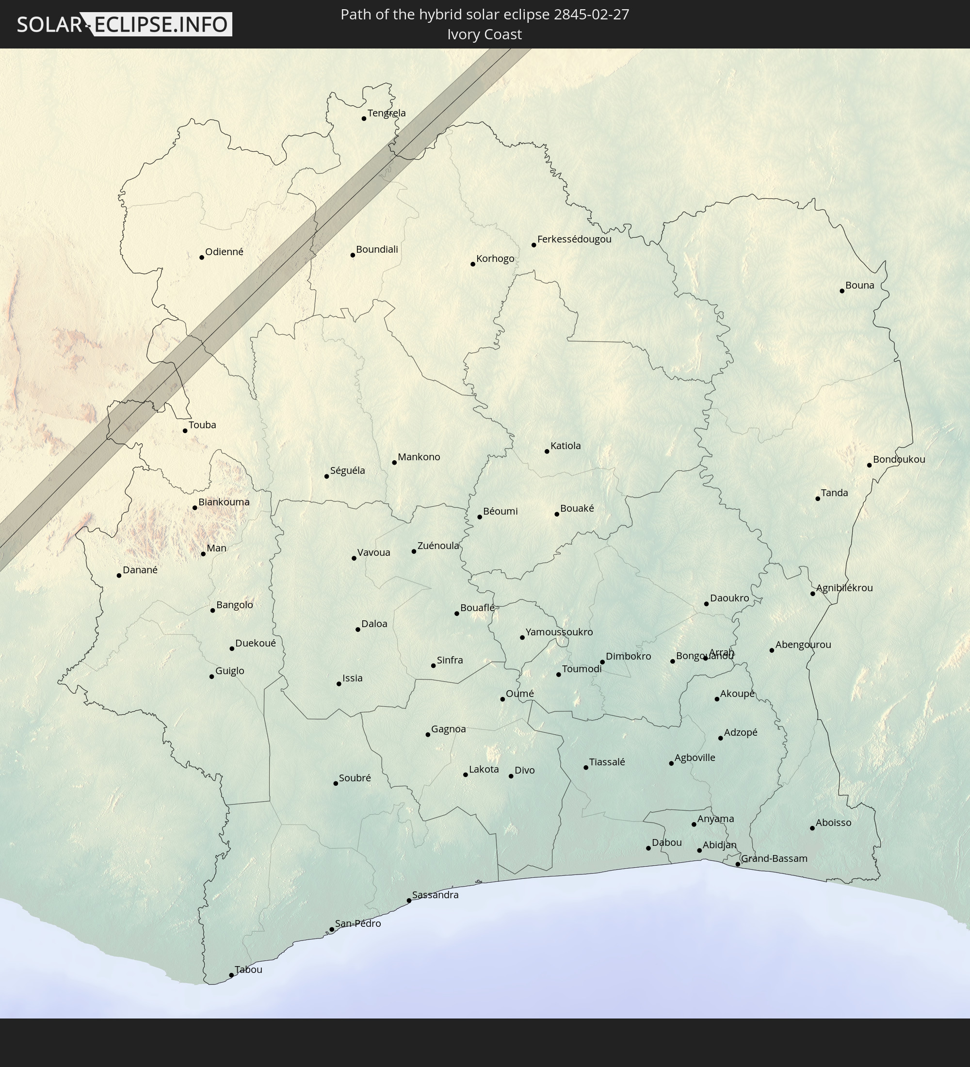 Wo kann man die Sonnenfinsternis vom 02/27/2845 sehen?