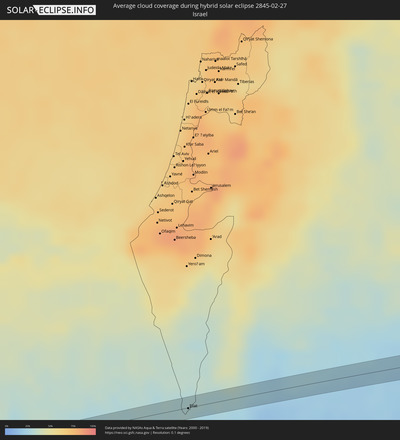 How will be the weather during the hybrid solar eclipse on 02/27/2845?