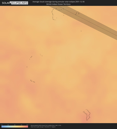 The following maps show the average cloud coverage for the day of the annular solar eclipse.